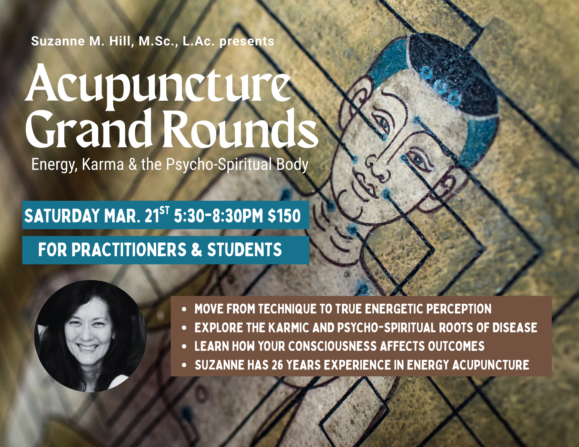 I (Suzanne) am offering a small, intimate Grand Rounds on a Saturday evening at the OHM Center. For three hours, I will treat two patients in real time and teach you how I see. After 26 years in practice, what interests me most is not just where to put the needles, it’s understanding the deeper pattern(s), energetically, psychologically, and karmically. I’ll walk you through my diagnostic process, what I notice, what I feel, what I listen for. We’ll talk about the invisible dynamics that often drive chronic conditions long before they manifest physically. If you are an acupuncturist, student, or serious healing practitioner who wants to deepen beyond protocols and formulas, you will love this class and find it extremely helpful.