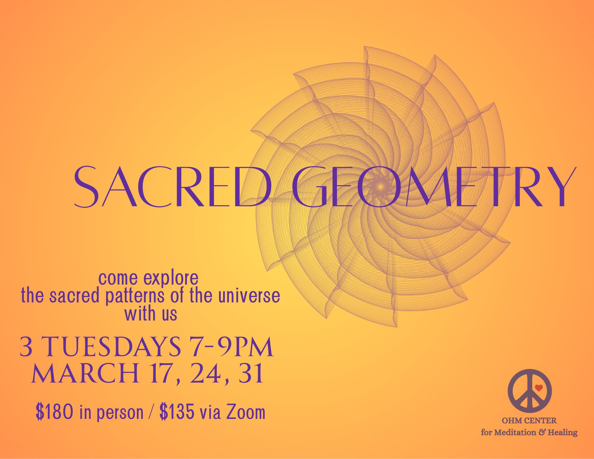 Sacred Geometry is the study of the universal patterns that underlie all of creation, from nature and the human body to consciousness itself. Across cultures and traditions, these forms have been used as tools for contemplation, healing, and awakening. Over 3 Tuesday evenings (7-9pm) , we will explore key geometric forms such as the circle, spiral, Vesica Piscis, Flower of Life, and other archetypal patterns. Through guided explanation, visual exploration, and contemplative reflection, participants will learn how these forms mirror the structure of reality and expand the boundaries of your mind. This series is both educational and experiential. No prior knowledge is needed. – Discover how sacred patterns appear throughout nature and the cosmos – Understand geometry as a bridge between science, art, and spirituality – Experience how geometric forms support meditation and inner stillness