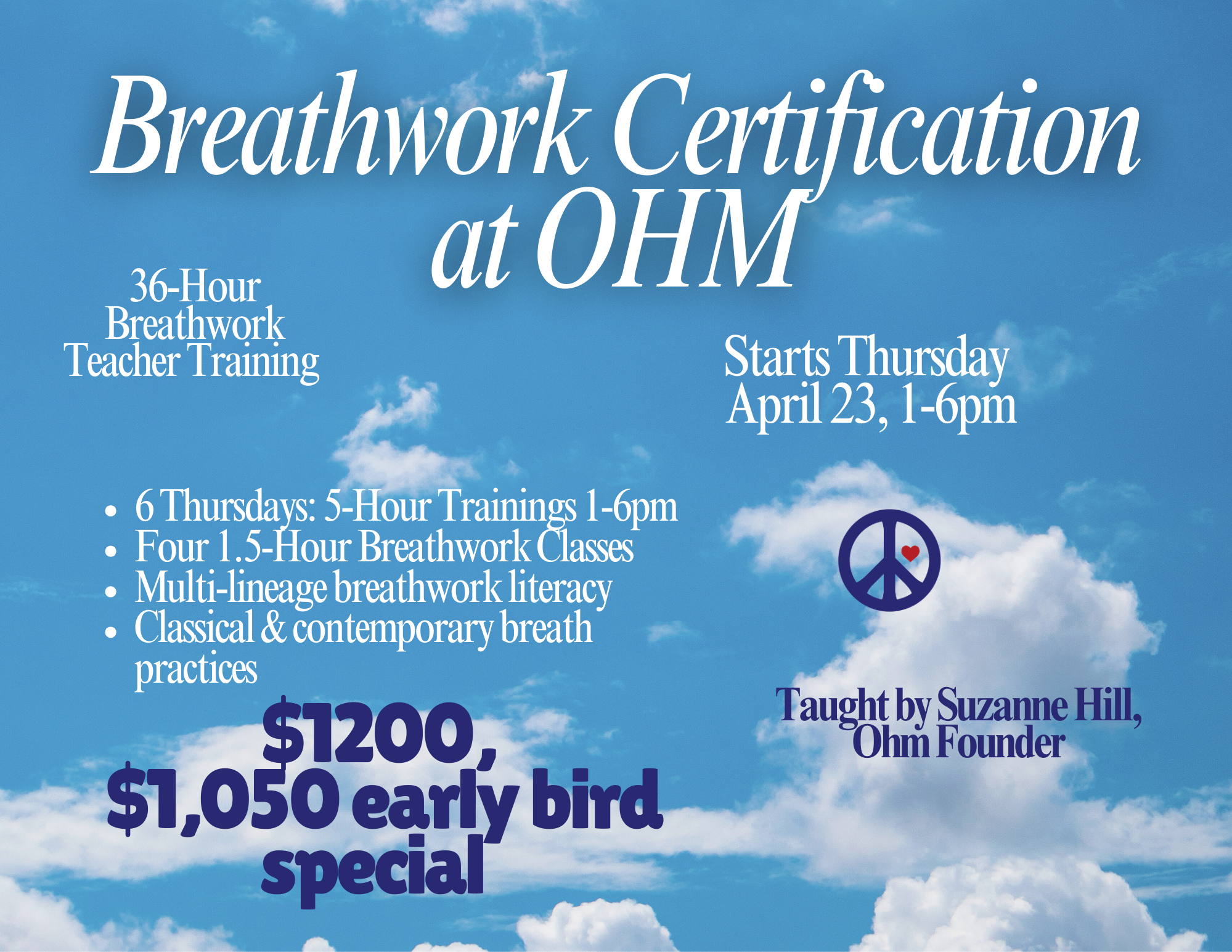 Tuition includes 4 Breathwork classes at Ohm