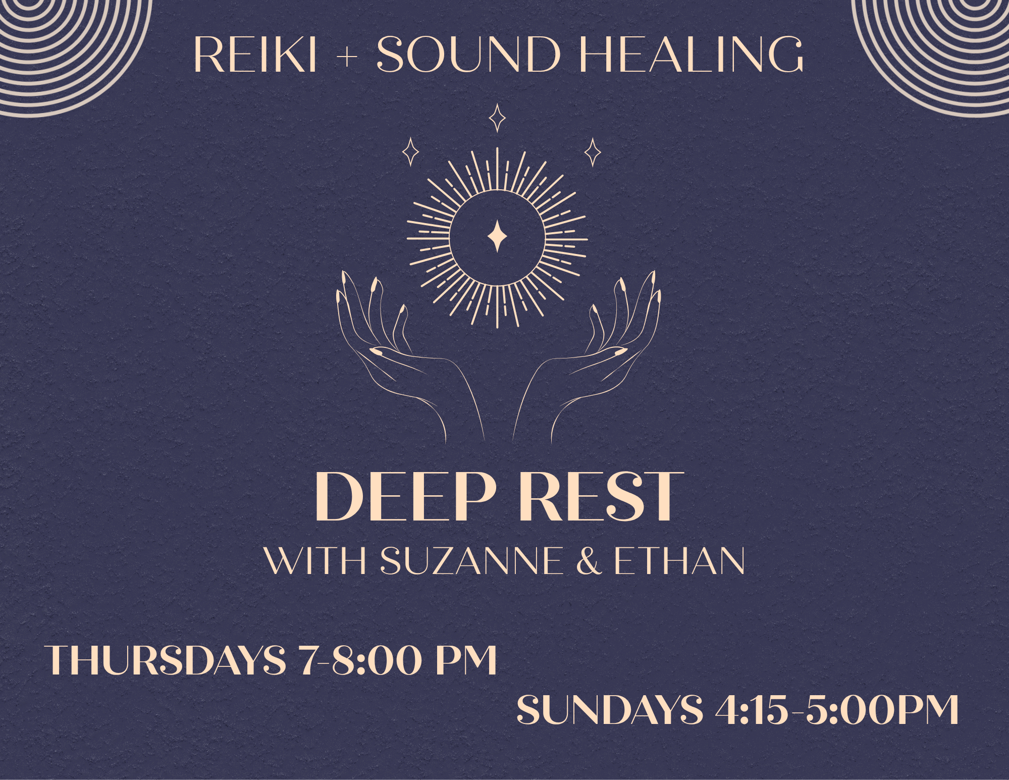 Deep Rest is a powerful fusion of Reiki energy healing and vibrational sound therapy, designed to soothe your nervous system, clear energetic blocks, and guide you into a deep state of inner stillness.