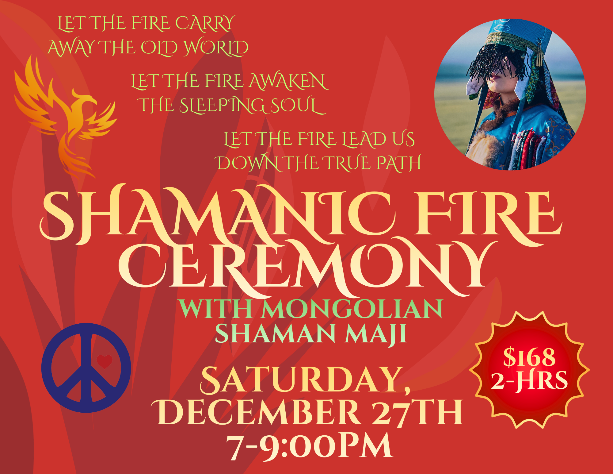 Join us at the OHM Center for a sacred evening of purification, prayer, and visioning led by Mongolian shaman, Maji. This ancient fire ceremony invites you to release what no longer serves you and step into a renewed state of clarity, strength, and spiritual alignment as the year comes to a close. Held in sacred space, this ceremony honors the Great Fire Spirit, an emissary of transformation, illumination, and renewal. Through ritual, offering, and the rhythmic pulse of the shamanic drum, participants are guided into an expanded state of consciousness where deeper insight and healing become possible. |