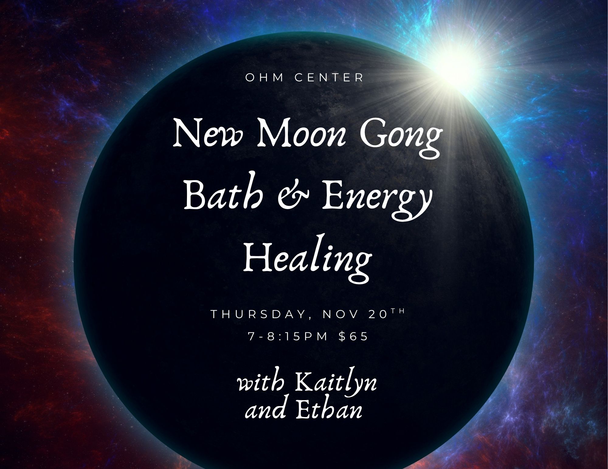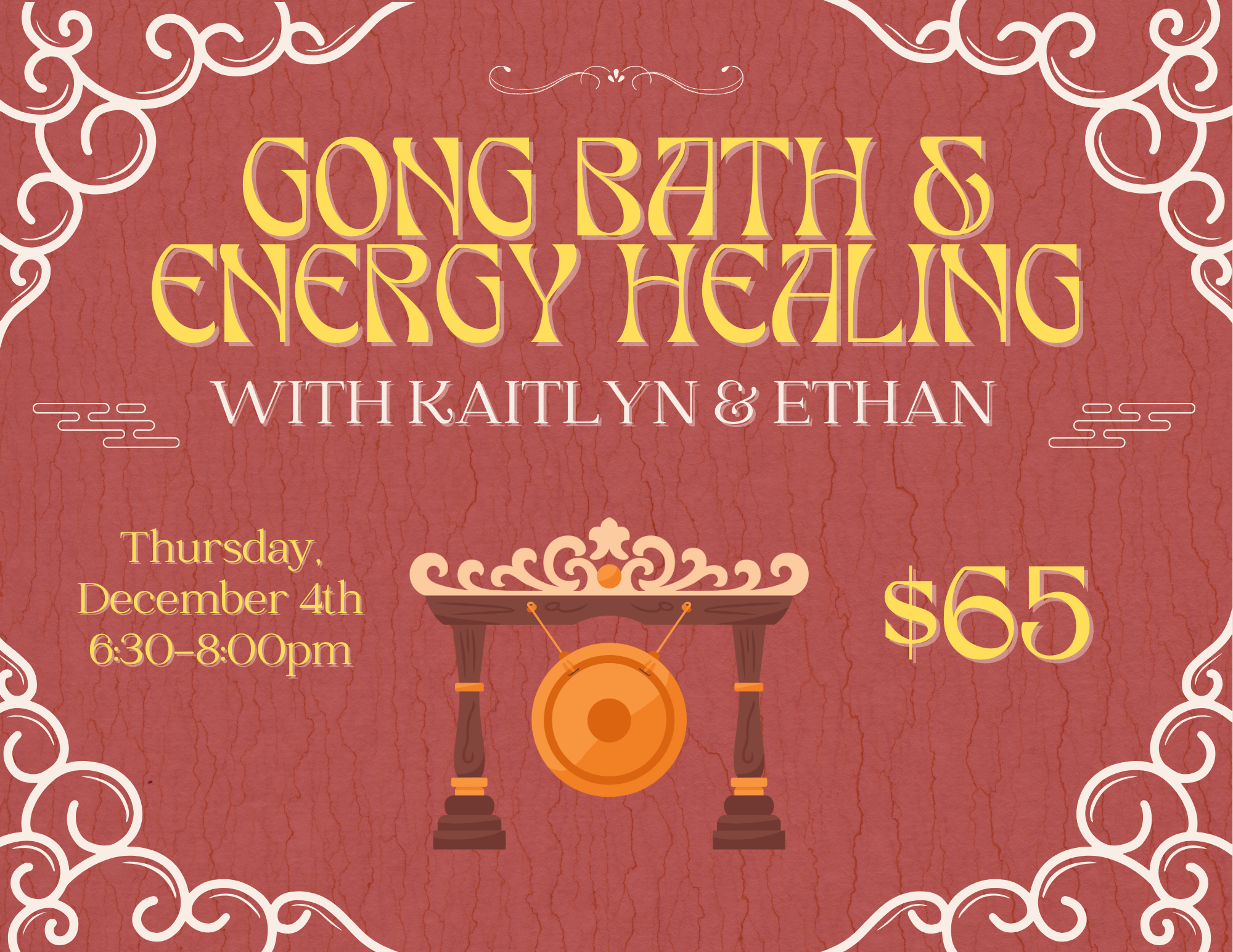 Come for the cathartic release of Kaitlyn’s Gong Bath (with our 40″ symphonic gong), followed by nurturing singing bowls to integrate the healing. All the while, Ethan will be channeling healing energy into the room. This all begins with Tibetan mantra chanting to cleanse and purify your chakras.