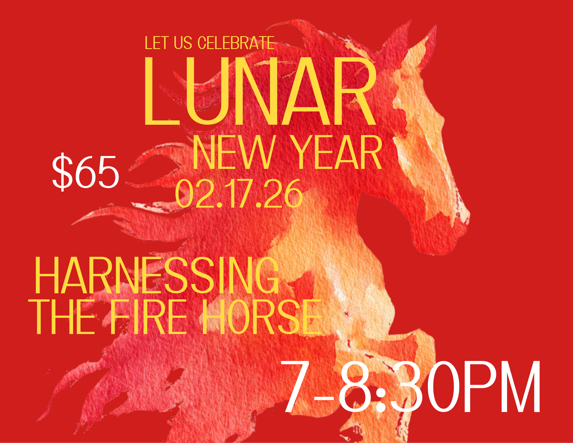 Join us for a Lunar New Year gathering honoring the Year of the Fire Horse, a powerful archetype of courage, movement, and transformation. In this special evening class, we’ll explore the qualities of the Fire Horse and how to embody this energy in the year ahead, then work directly with it through guided energy and breath-and-movement exercises designed to awaken inner fire while keeping it grounded and focused (unharnessed fire can scatter). We’ll close with an integrative and restorative sound bath, allowing the fire to settle and integrate, sealed by the quiet yet powerful potency of the New Moon.