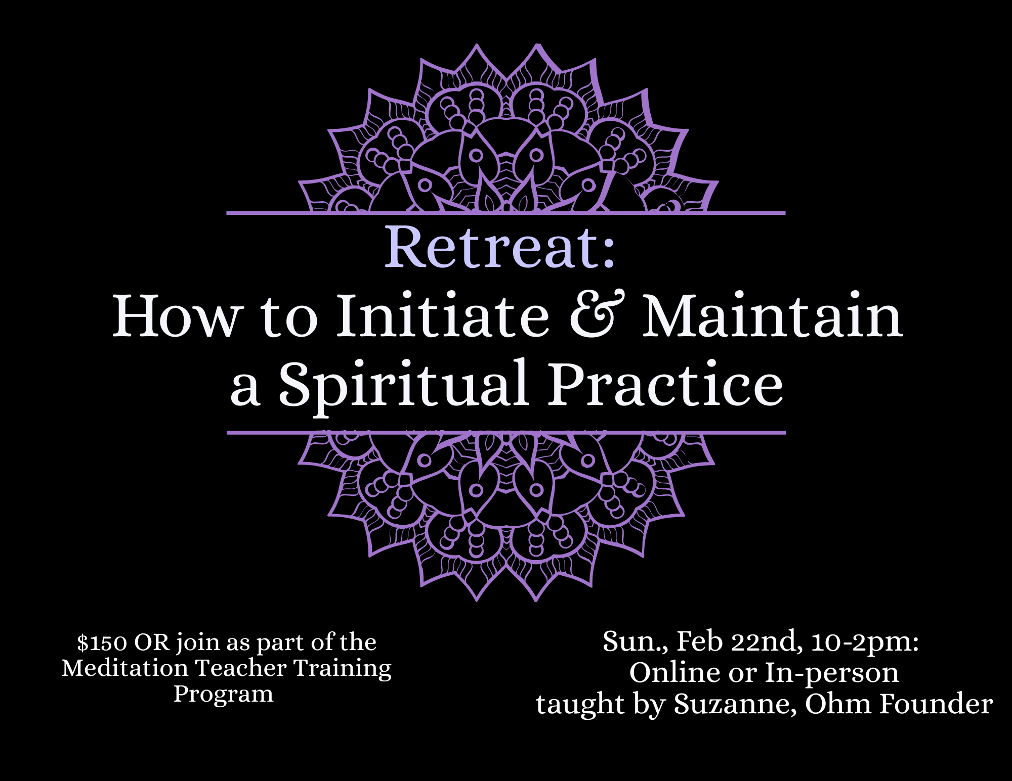 In this 4-hour intensive, there will be both lecture and practice! For those of you who have teetered on the edge of starting a spiritual practice, but haven’t solidly developed a regular, disciplined protocol, then this class is for you! Whether you’re just starting out or seeking to deepen your spiritual path, this transformative workshop is designed to help you both begin and sustain a meaningful daily practice. In a world full of distractions, cultivating a steady spiritual rhythm can feel overwhelming. This workshop offers the structure, tools, and inspiration needed to build a practice that truly supports your life, from the inside out. Through a blend of guided meditation, breathwork, reflection, group discussion, and practical teaching, you’ll learn: – How to set up a practice that’s aligned with your life and temperament – Ways to work with resistance, inconsistency, and doubt – Core elements of spiritual practice across traditions – Daily rituals that help you stay connected. Leave with a clear personal blueprint, a deeper understanding of what “practice” really means, and the motivation to stay committed long after the workshop ends. Taught by Suzanne, Ohm Founder