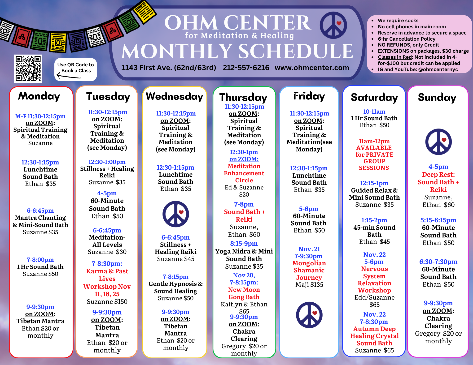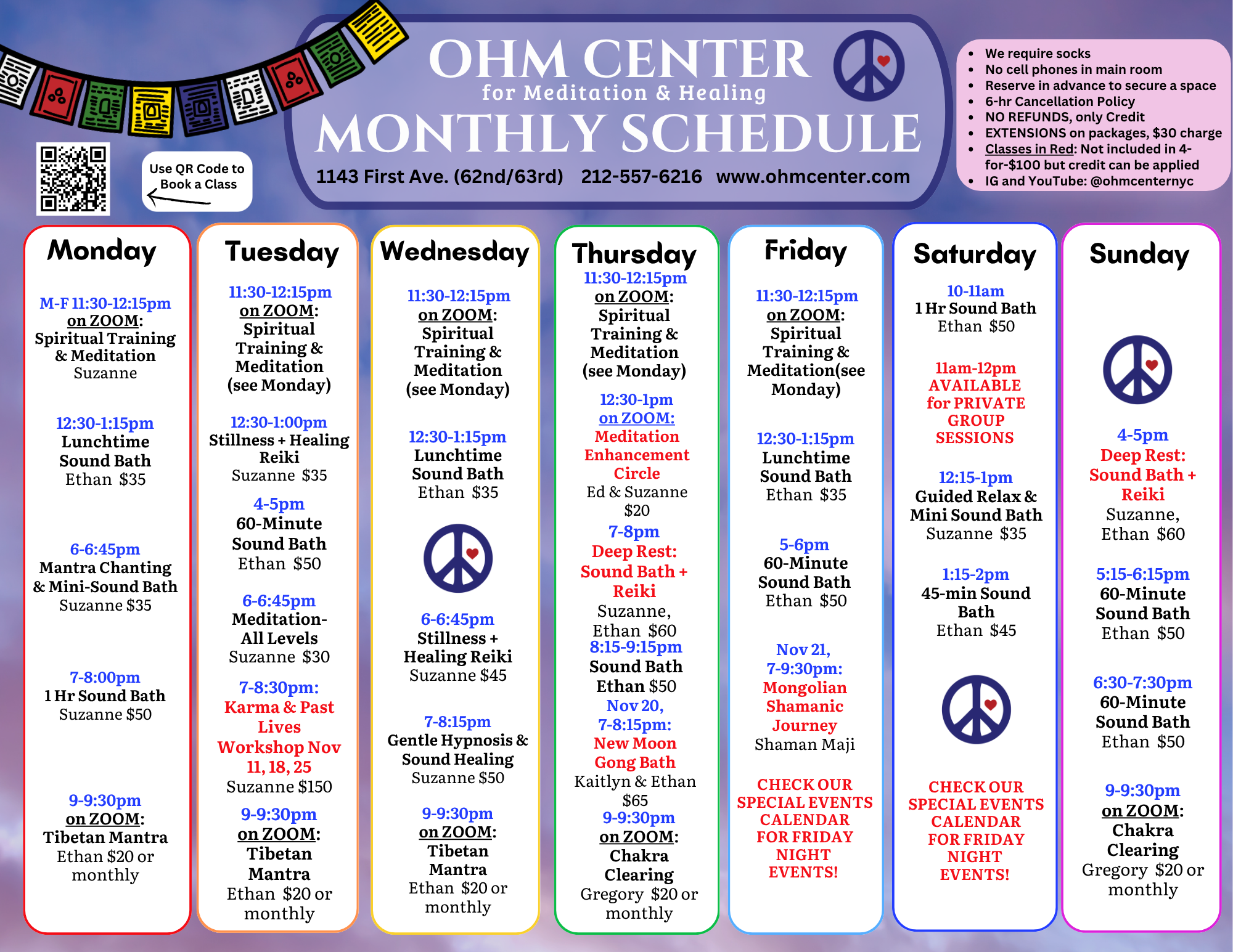 Browse through OHM’s Special Classes and Events! Scroll past this section for our Regular Weekly Classes (32 per week!)