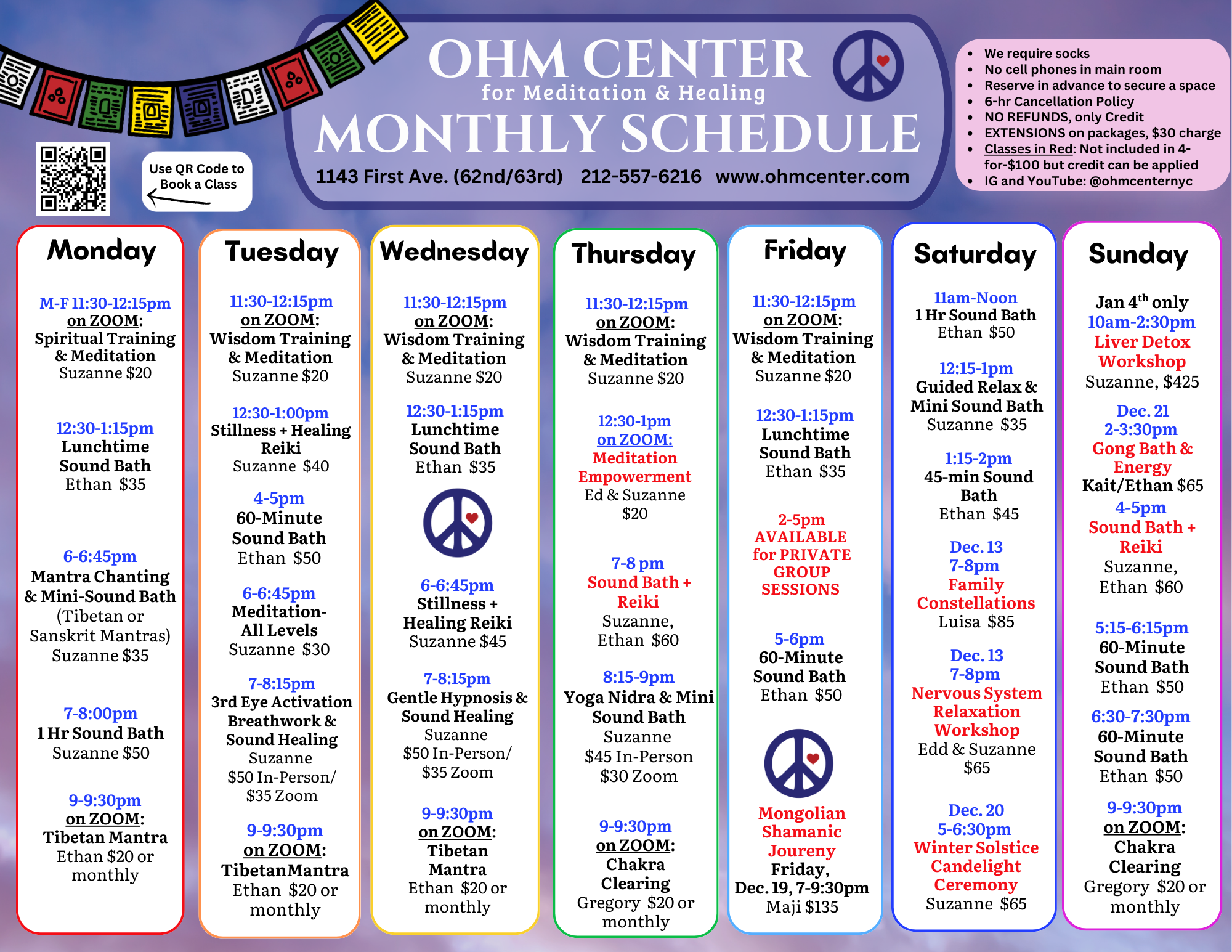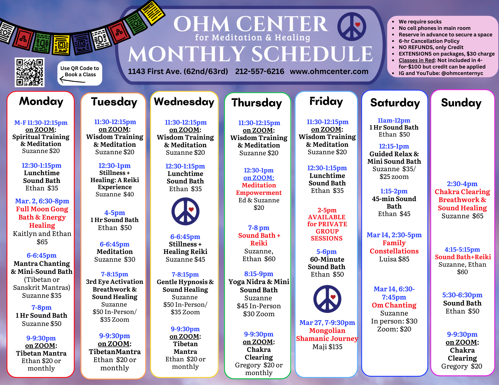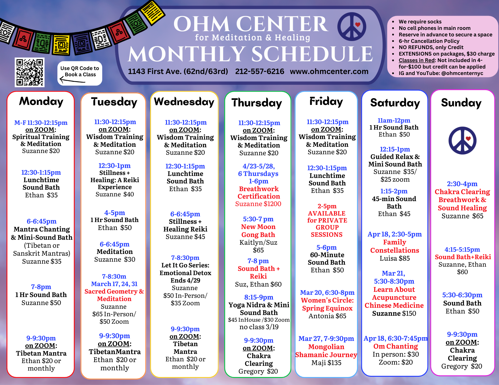 Browse through OHM’s Special Classes and Events! Scroll past this section for our Regular Weekly Classes (30+ per week!)