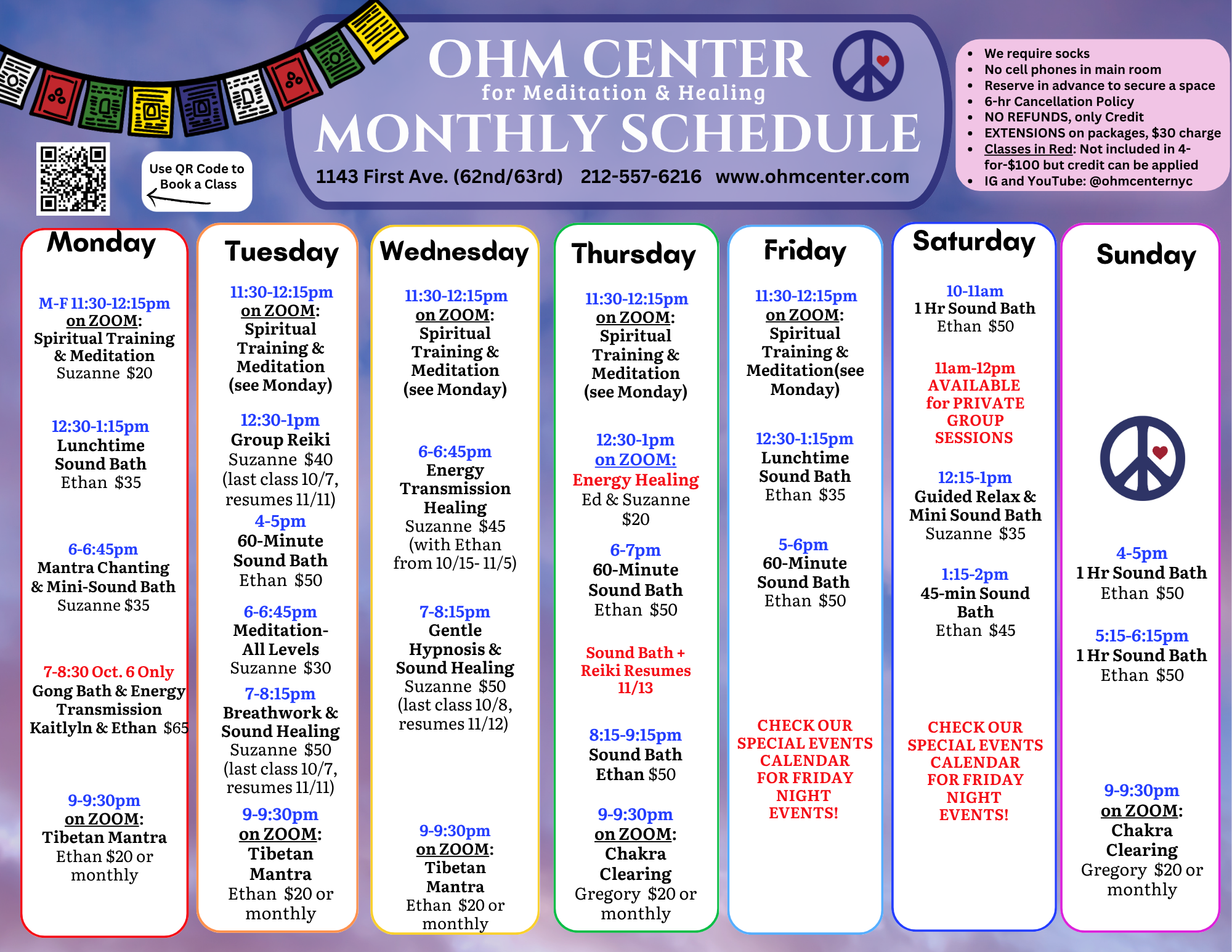 We have an intro package for people who would like to try a variety of our classes. This gives you 4 classes in 30 days, making each class $25. At this price, people feel free to experiment. Please note that this package is for you only. A one-time, 1-month extension is offered for $30 if for some reason you don’t make all 4 classes in 30 days. P.S. This is a ONE-TIME special offer, but you can purchase at any time…it doesn’t have to be your first purchase at Ohm.